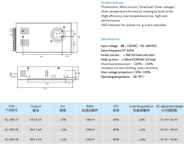 過電壓保護(hù)/過電流保護(hù)/過溫保護(hù)內(nèi)置風(fēng)扇冷卻